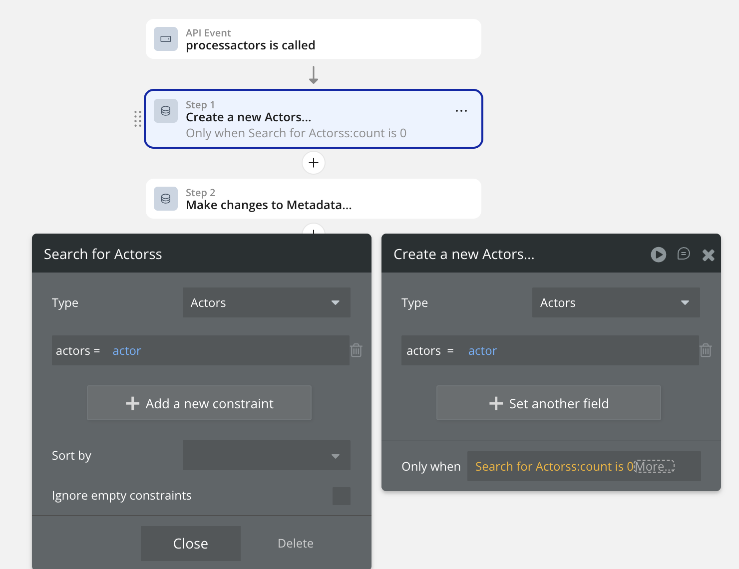 Also, you could consider reviewing your DB structure to fit your process. For example, in this case, I would just create the metadata with a list of text that would be the ID of actors. I could run all actors list in one Schedule on a list to create them and in parallel, Run the metadata flow to create all movies with the list of text of actors ID for this movie. This way, I don’t need to use “add” and will save on WU because I don’t need to update the metadata X times for each actors.