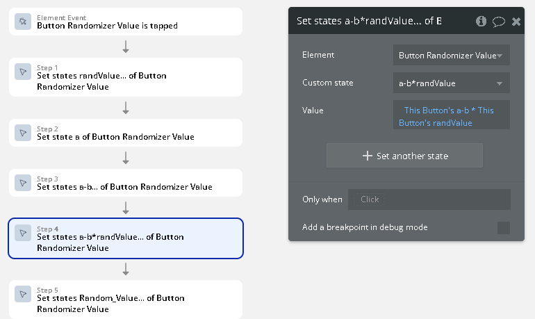 Every other click on the button, value a-b is evaluated to 0 (zero).