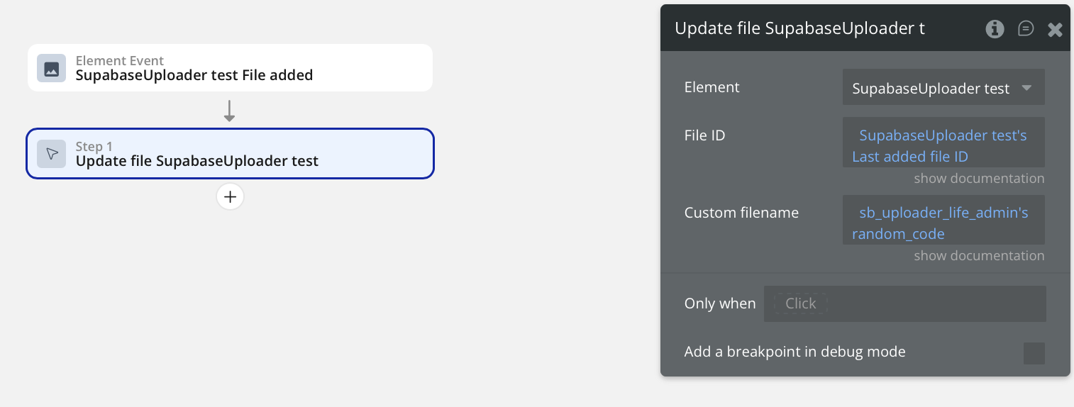 my issue is that when a user wants to add an item, our process generates the random code and passes it into the plugin for it to create the file on the storage - this works. however when they want to upload another file for another record (only one file per record) in the same folder. our process regenerates a new random code, however the plugin has not recognised that the code has changed and tries to create the file in the storage with the previous name. I’ve tried to ‘reset’ the element, but I can’t seem to find a way to force it to forget the old code and replace with the new one.