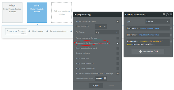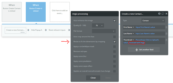 When I click create it will save the image thumbnail but it will zoom/crop to fit first: