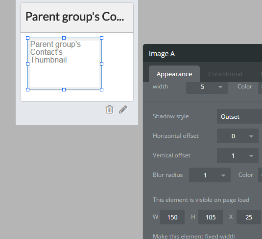 Then, later on, on the contact card, I show the image, but using a different set of dimensions that are proportionally the same (150 x 105 is 1.5 times the size of 100 x 70)